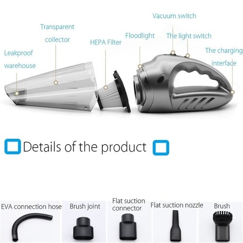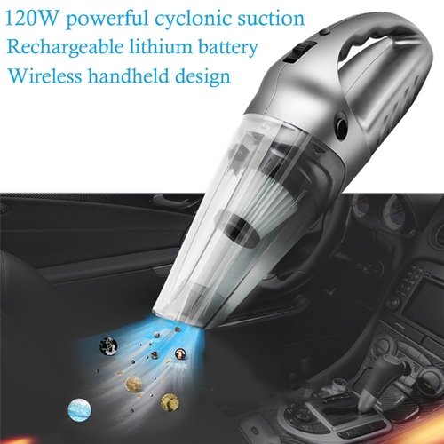 Rechargeable 120W high power cordless vacuum cleaner. Perfect for vacuuming cars, vehicles and even your home.